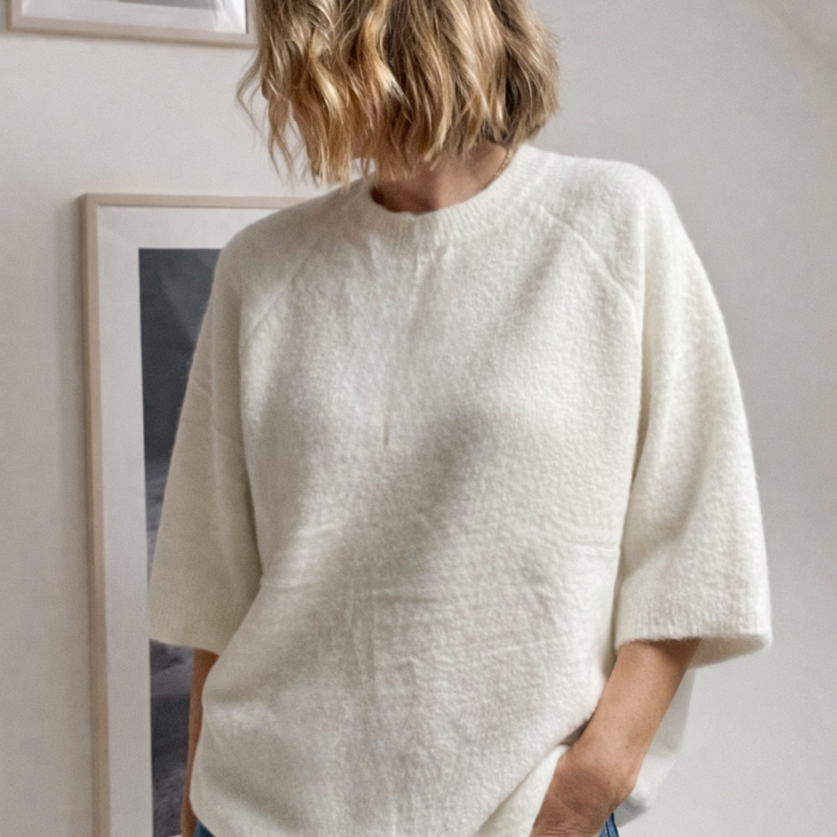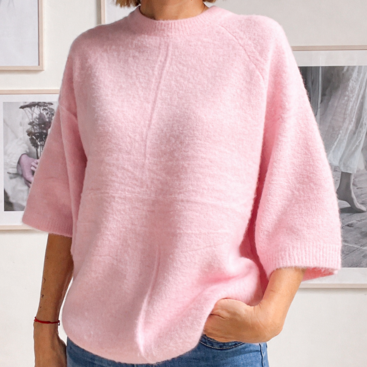 Pull manche 3/4 Deux Couleurs Rose/Blanc